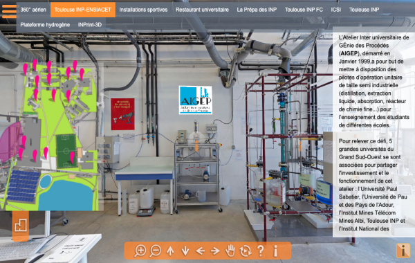 L’AIGEP (Atelier Interuniversitaire en Génie des Procédés) est issu de la volonté commune de 5 universités du Grand Sud Ouest de proposer à leurs étudiants des installations de génie des procédés de tailles industrielle et préindustrielle et d’en rationnaliser les coûts. L’atelier peut également mettre ces équipements à disposition des industriels. Il comprend actuellement 24 installations correspondant à des opérations unitaires très classiques telles que la distillation, l’absorption, extraction liquide/liquide à des techniques plus récentes telles que l’extraction par fluide supercritique. Depuis 2016, certains de ces équipements peuvent être utilisés à distance via un weblab.
